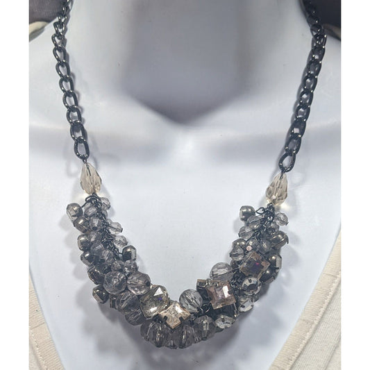 Ann Taylor Loft Grey And Silver Tone Cluster Gem Necklace