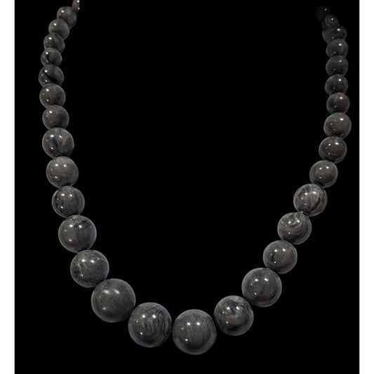 Causal Marbled Grey Graduated Plastic Bead Necklace