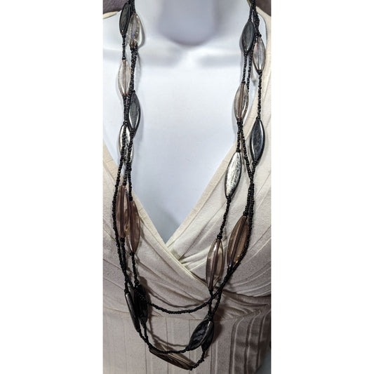 Modern Black Glass And Smoky Grey Beaded Layered Necklace
