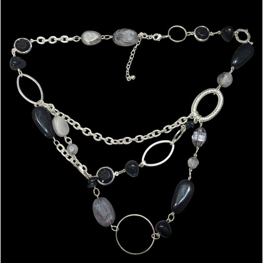 Elegant Layered Black And Grey Beaded Necklace With Rhinestone Accents