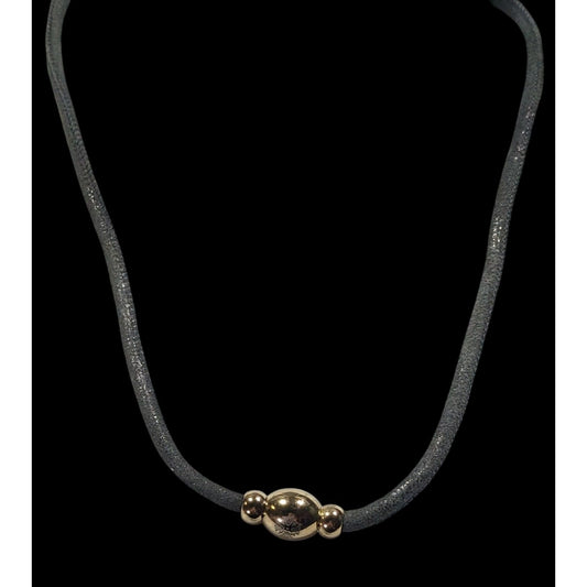 Whimsical Black And Grey Acrylic Beaded Necklace With Gold Tone Shimmer