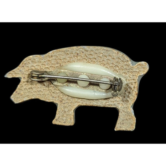 Cottagecore Pig Shaped Grey And Blue Ceramic Brooch