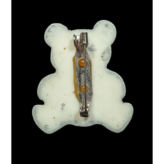 Vintage Kidcore Grey Teddy Bear Brooch With Bowtie