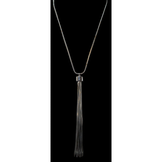 Jules Grey And Gold Tone Slinky Chain Tassel Necklace