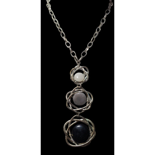 Graduating Grey Scale Gemstone Knot Pendant Necklace