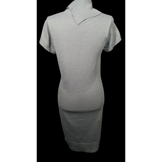 Tiana B Grey Asymmetrical Button Collared Sweater Dress With Pockets