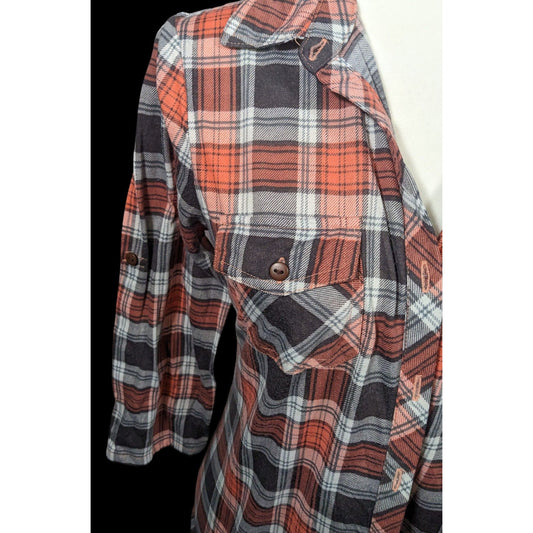 Eden & Olivia Grey And Orange Plaid Button Down Shirt