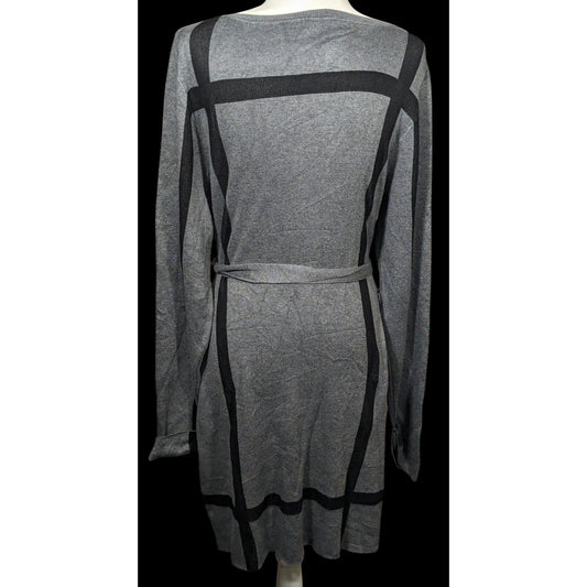 Love Scarlett Grey And Black Accent Striped Tie Waist Sweater Dress