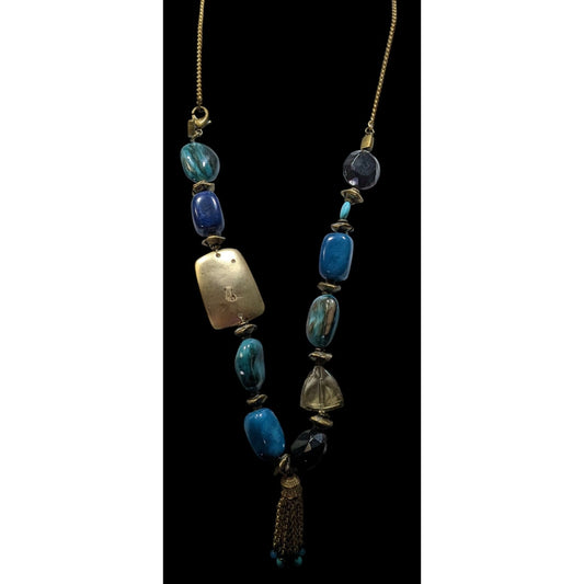 Vintage Bohemian Blue Stone Necklace With Gold Tone Accents And Tasel
