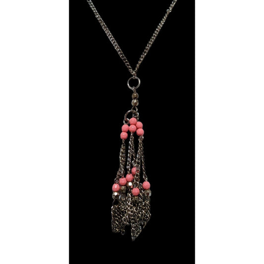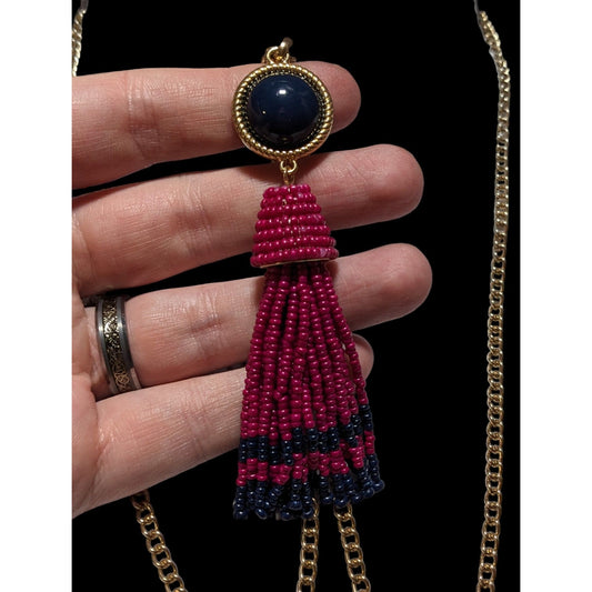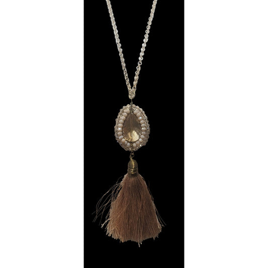 Bohemian Crystal Pendant Necklace With Tassel & Beaded Details