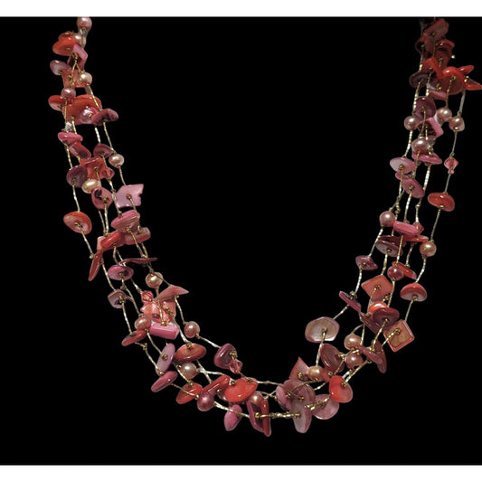 Multi-Strand Pink Shell Chip And Pearl Necklace