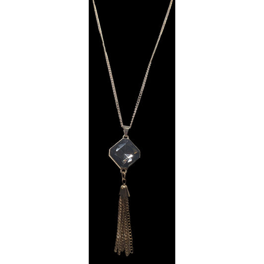 Gold Chain Necklace With Crystal Pendant & Tassel
