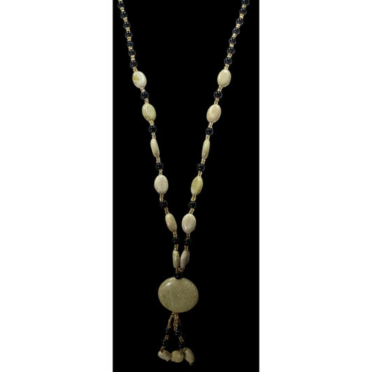 Vintage Boho Necklace W/ Blue Green & Hand-Painted Shell Beads