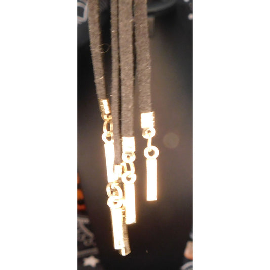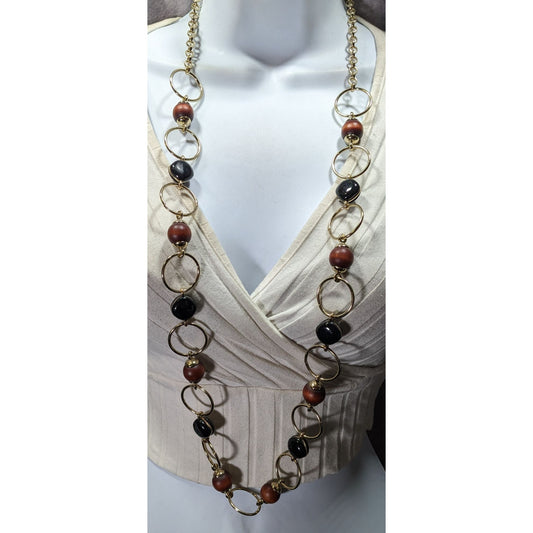 Chico's Brown And Black Beaded Gold Tone Ring Link Necklace