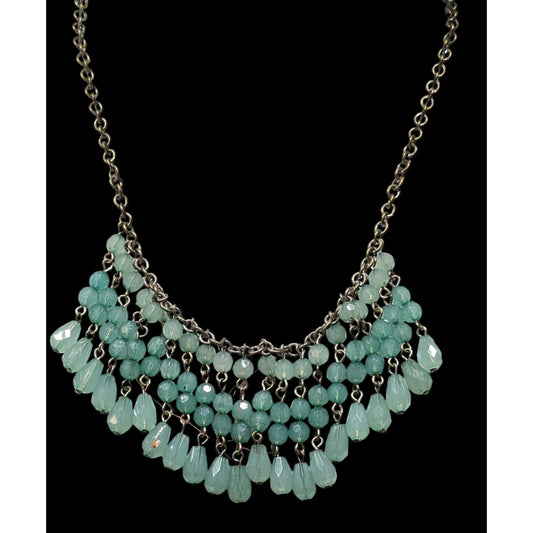Bohemian Fringe Aqua Beaded Bib Necklace With Antiqued Gold Chain