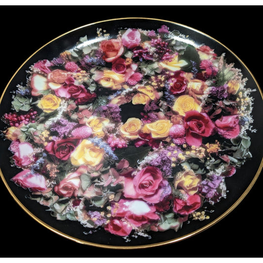 Vintage 1992 Summers Bounty Rose Wreath Decorative Plate By Knox & Robertson
