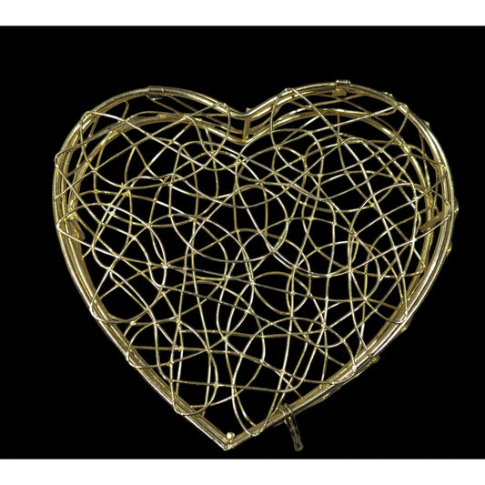 Coquette Mesh Heart Gold Tone Wire Hinged Lidded Basket