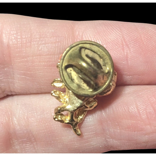Minimalist Dove Shaped Red And Gold Tone Enamel Filled Lapel Pin