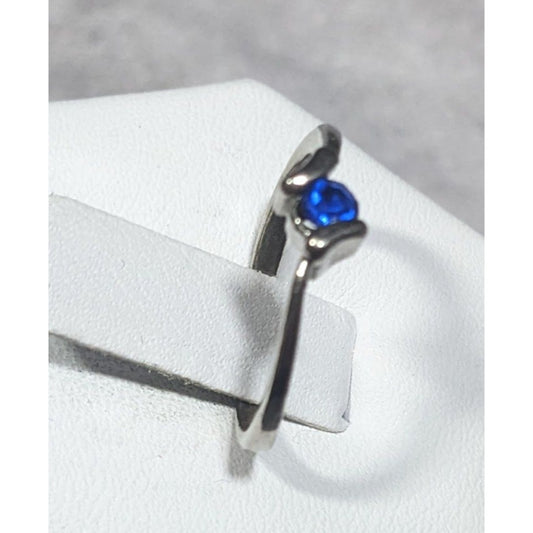 Minimalist Blue Gemmed Silver Tone Ring Size 5