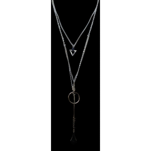 Multilayer Geometric Silver Tone Charm Necklace