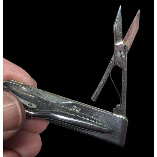 Vintage Italian Silver Tone Textured Tie Clip With Retractable Scissors