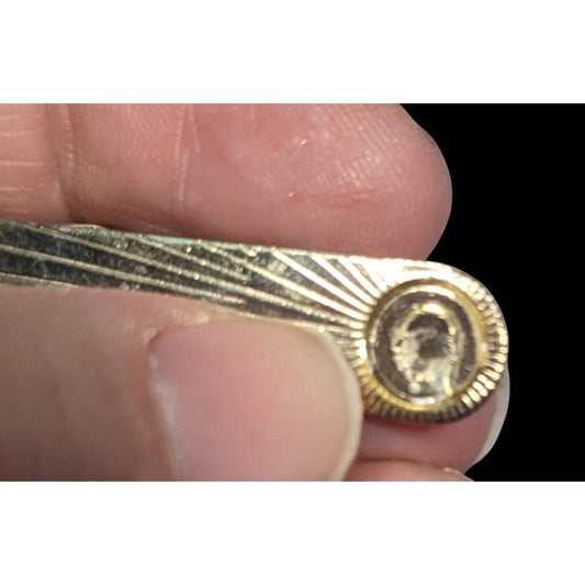 Vintage Sun Burst Engraved Gold Tone Tie Clip (Missing Stone)