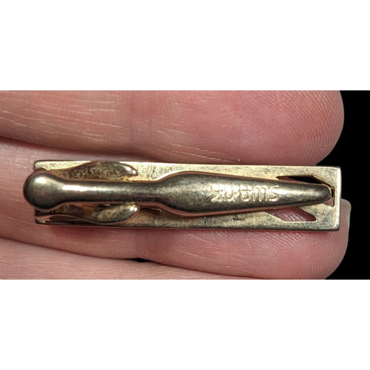 Vintage Swank Gold Tone Diagonal Cutout Tie Clip