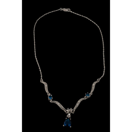 Vintage Avon Elegant Blue Gemmed Silver Tone Formal Princess Necklace