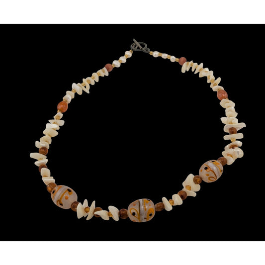 Vintage Marbled Glass Necklace In Honey And Earth Tones