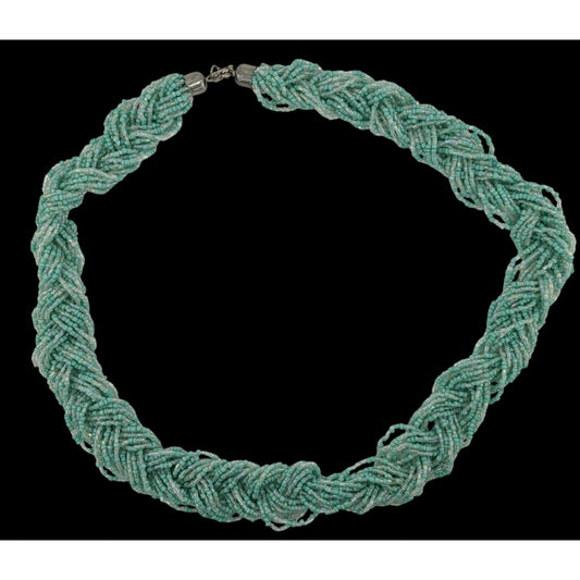 Vintage Mermaidcore Pastel Blue Glass Braided Necklace