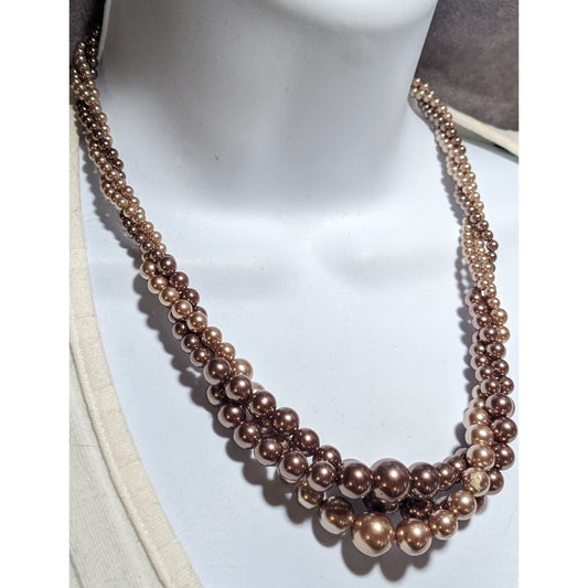 Roman Brown And Tan Twist Pearl Beaded Necklace