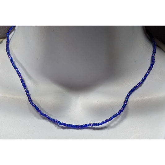Handcrafted Iridescent Blue Seed Bead Necklace