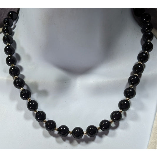 Elegant Corporate Goth Black Beaded Necklace With Silver Tone Accents