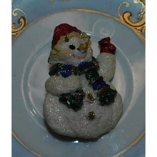 Glitter Snowman Holding Red Bird Brooch