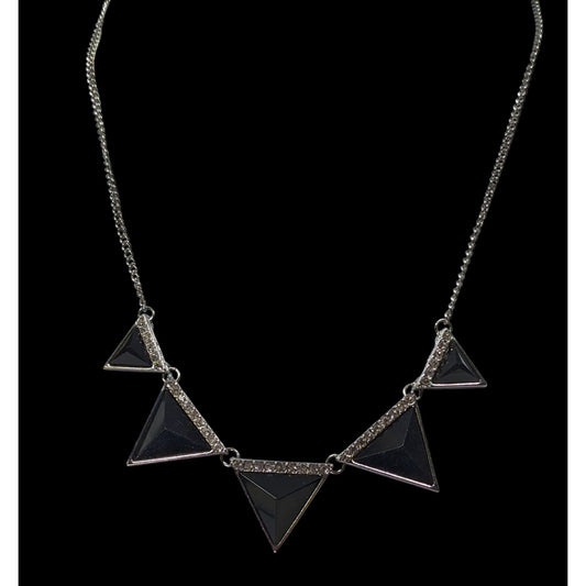 Geometric Black Triangle Necklace With Rhinestone Accents