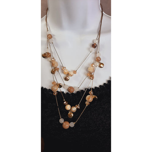 Layered Gold-Tone Beaded Necklace With Natural Stone And Resin Accents