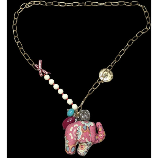 Cottagecore Pink Plush Elephant Necklace