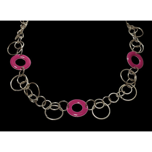 80s Pink And Silver Large Link Necklace.