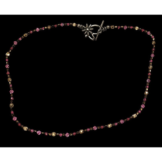 Vintage Handmade Pink & Gold Beaded Necklace