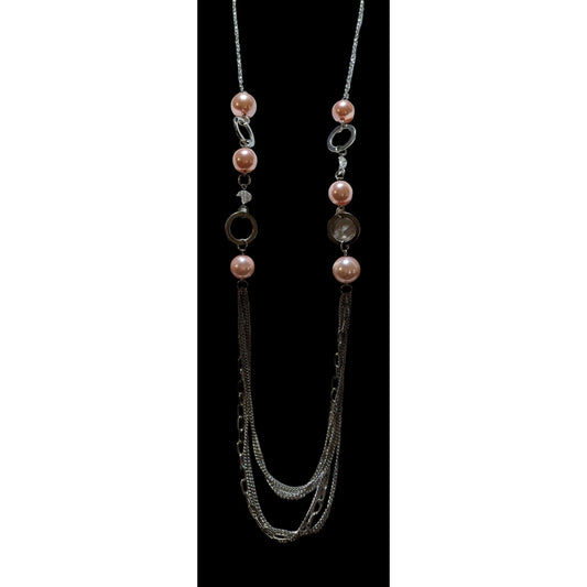 Long Silver & Pink Pearl Chain Necklace