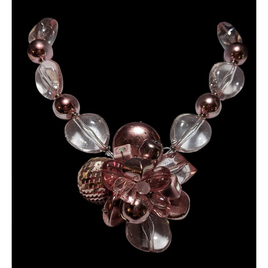 Pink Metallic Floral Statement Necklace