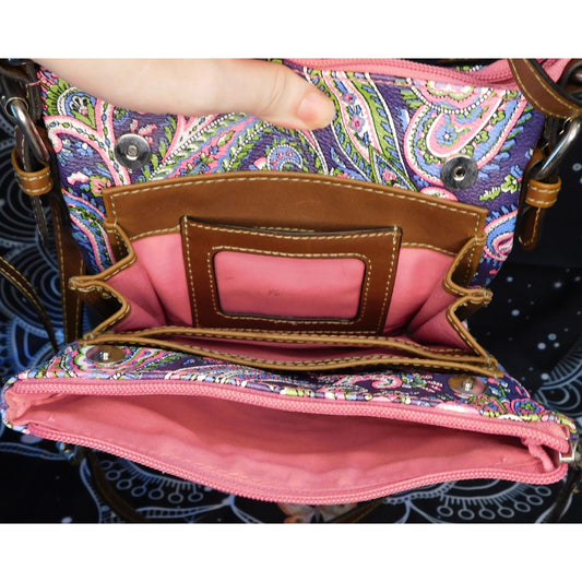 Chaps Rainbow Paisley Crossbody Bag With Brown Accents