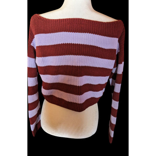 Urban Outfitters Maxine Red And Purple Striped Cropped Sweater