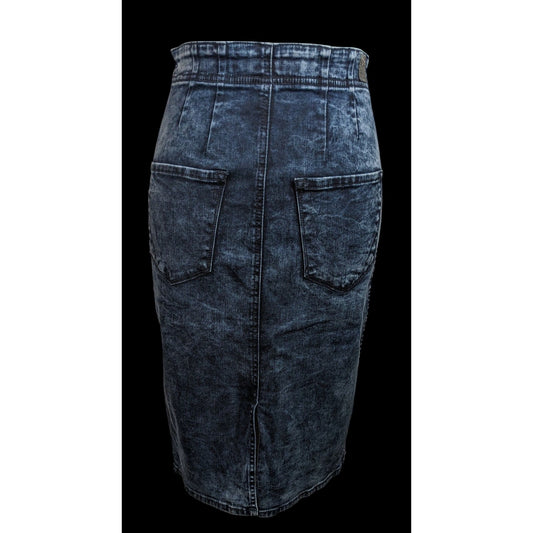 DKNY Blue Denim Full Zip Knee Length Pencil Skirt With Real Pockets!