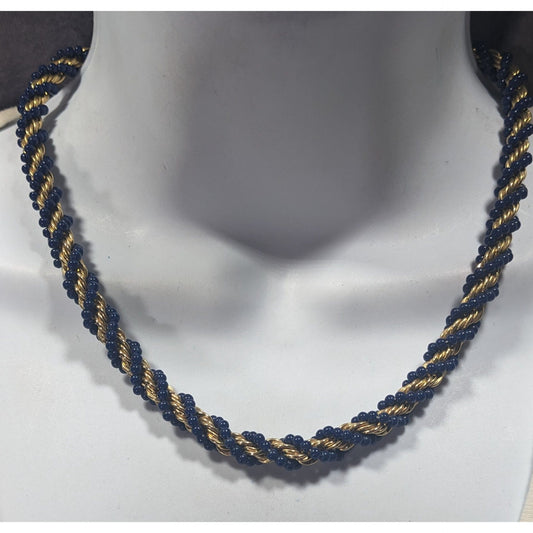 Elegant Vintage French Twist Gold Tone Chain Necklace With Blue Glass Beads