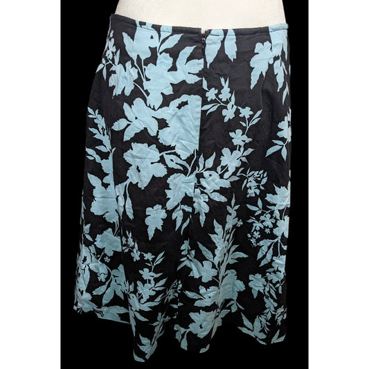 Vintage Newport News Black And Blue Floral Knee Length Skirt