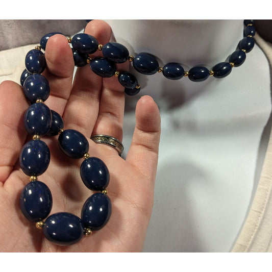 Vintage Monet Dark Blue And Gold Tone Beaded Necklace