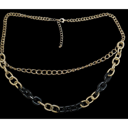 80s Glam Black and Gold Chunky Multilayer Chain Necklace