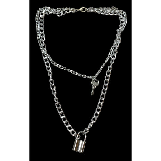 Multilayer Silver Padlock And Key Necklace