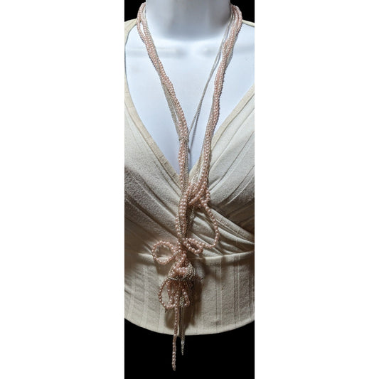 Coquette Pastel Pink Pearl Knotted Necklace